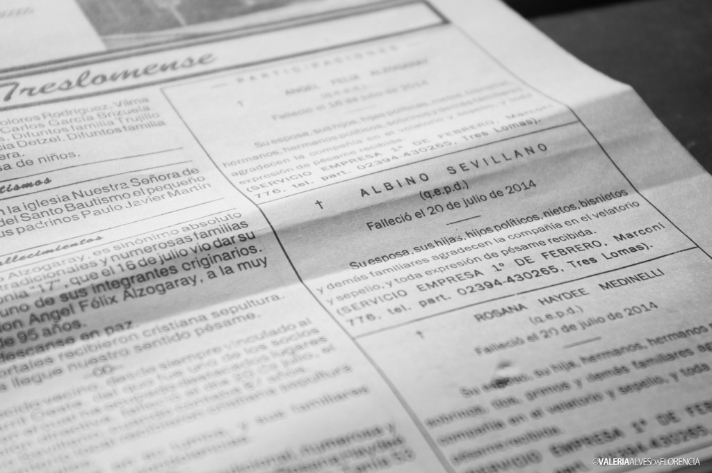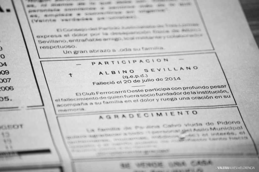 And there are his tangos, the first steps learned with D’Arienzo, the chords of Naranjo en flor. The love for the railroads, the station bell, the sound of his slippers in the gallery. His look of underhanded encouragement as he said: -“To Poland? Are you going to Poland alone?”. The bicycle, the open cap, the metal mate, the sugar bowl with drawings. His coloured eyes, his white hair since the beginning of times. The laboured breathing, the forced naps after lunch. The weight of his body when he walked with difficulty.