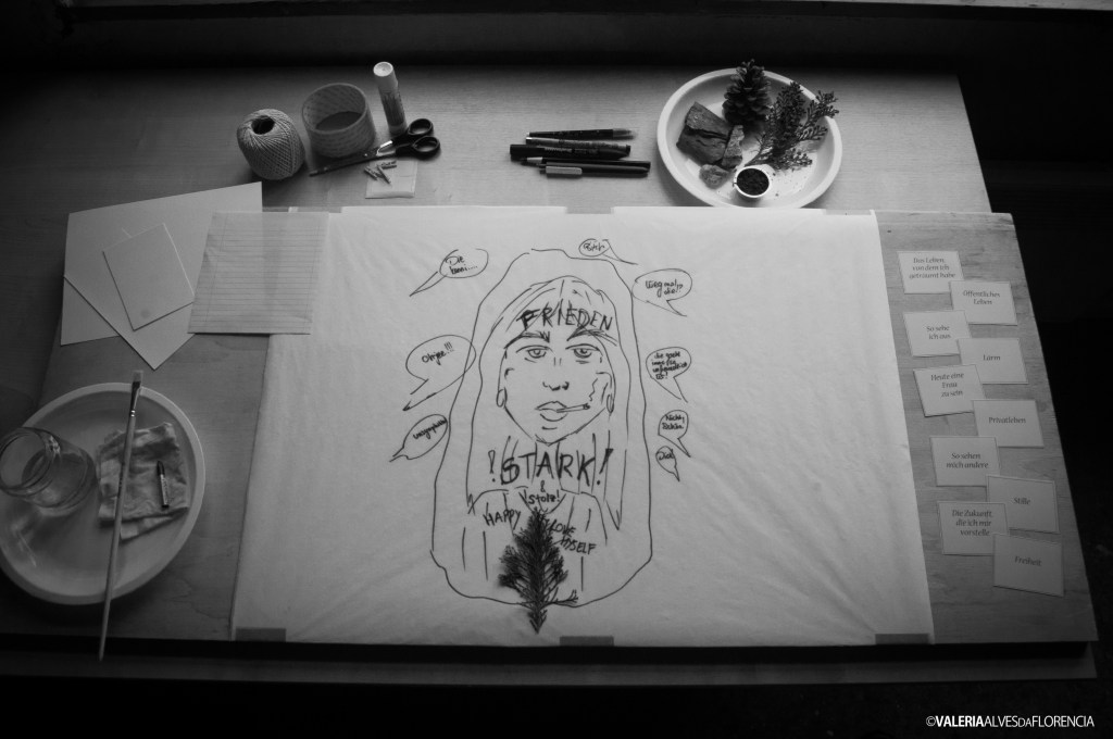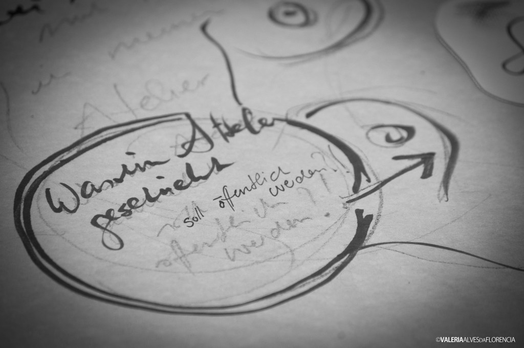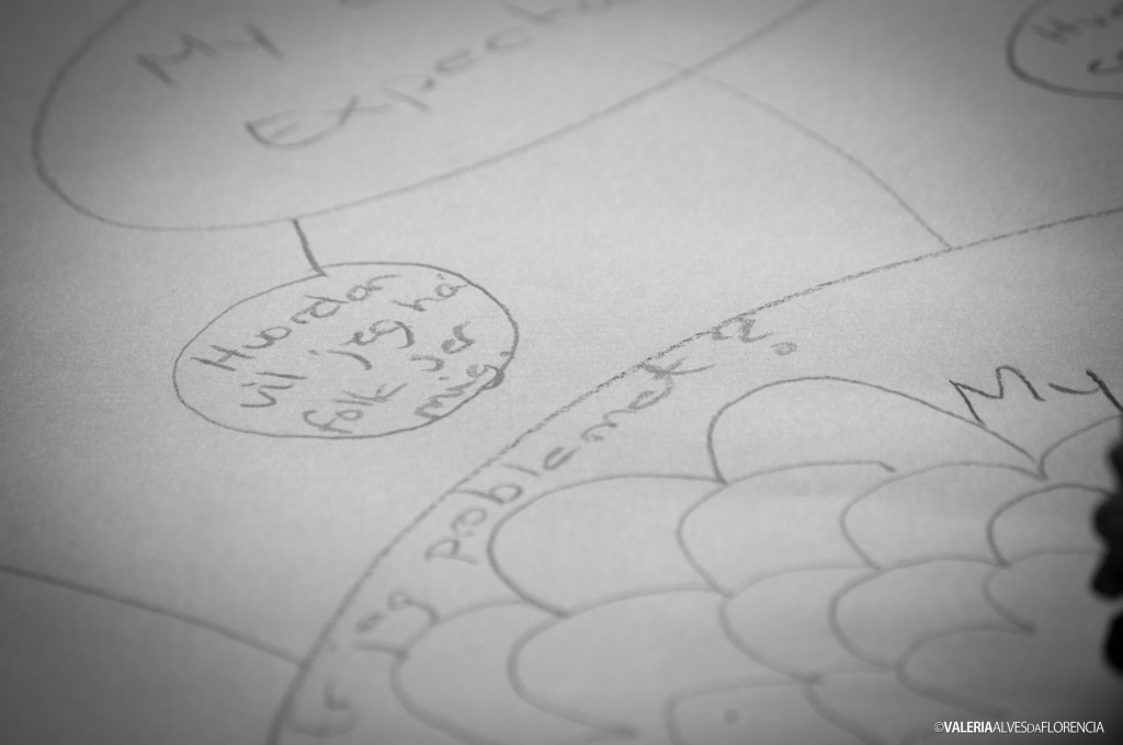 I made available all the necessary tools to communicate as it was better for them: writing, drawing, doodling, choosing objects, moving around the studio, staying still in silence or expressing through words.